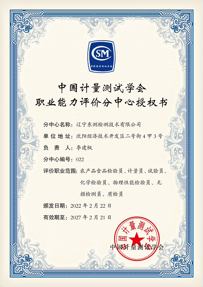 中國(guó)計(jì)量測(cè)試學(xué)會(huì)職業(yè)能力評(píng)價(jià)分中心授權(quán)書(shū)
